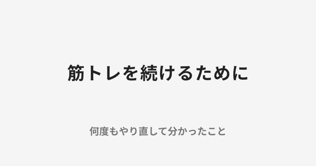今回は、小さな筋トレから始めて、今の運動習慣をどう作ってきたかをまとめます。... -